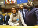 Al Parlamento Europeo con il VicePresidente Fabio Massimo Castaldo, sala della Plenaria (nella foto sono quello grosso che porta la bandiera del Movimento)